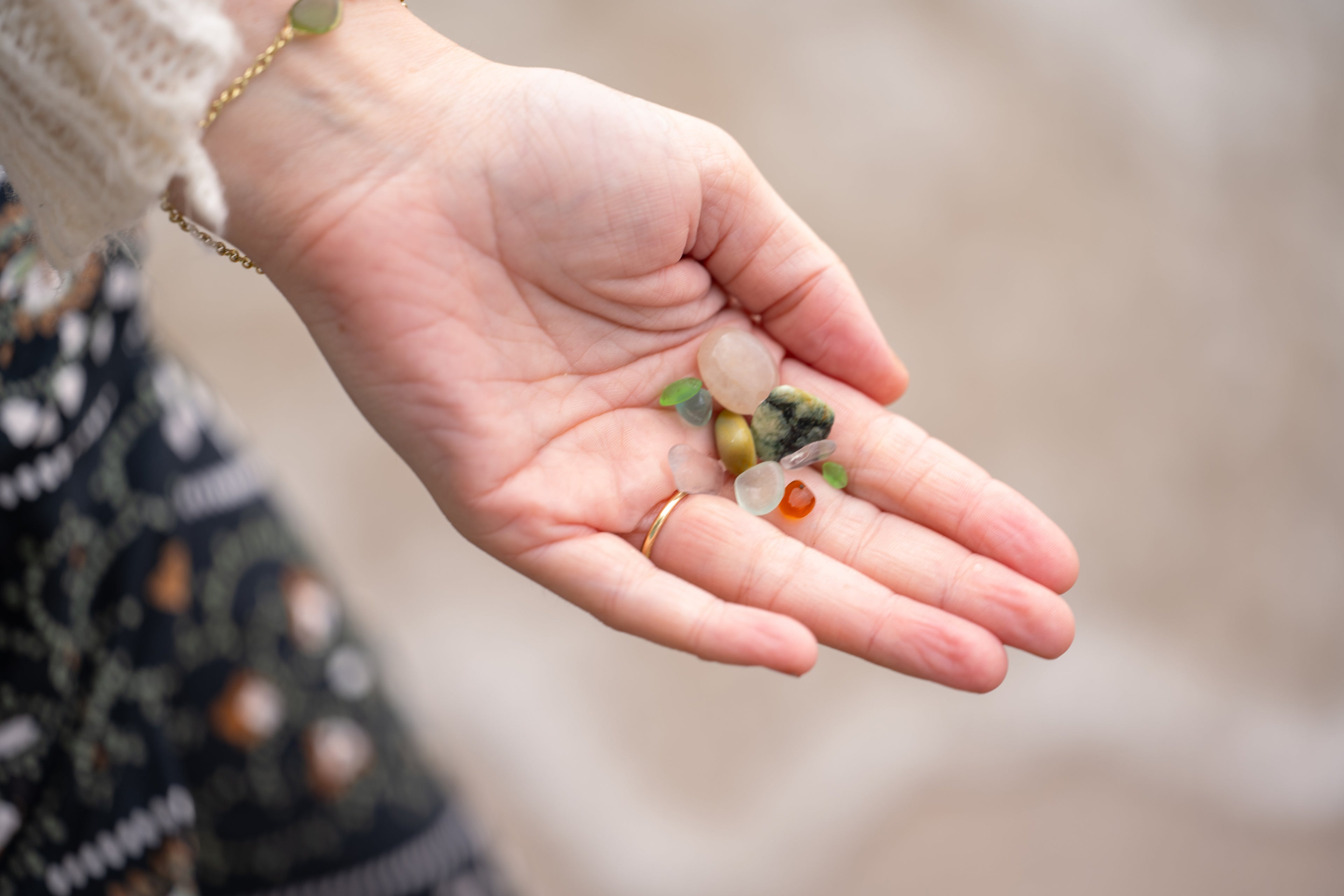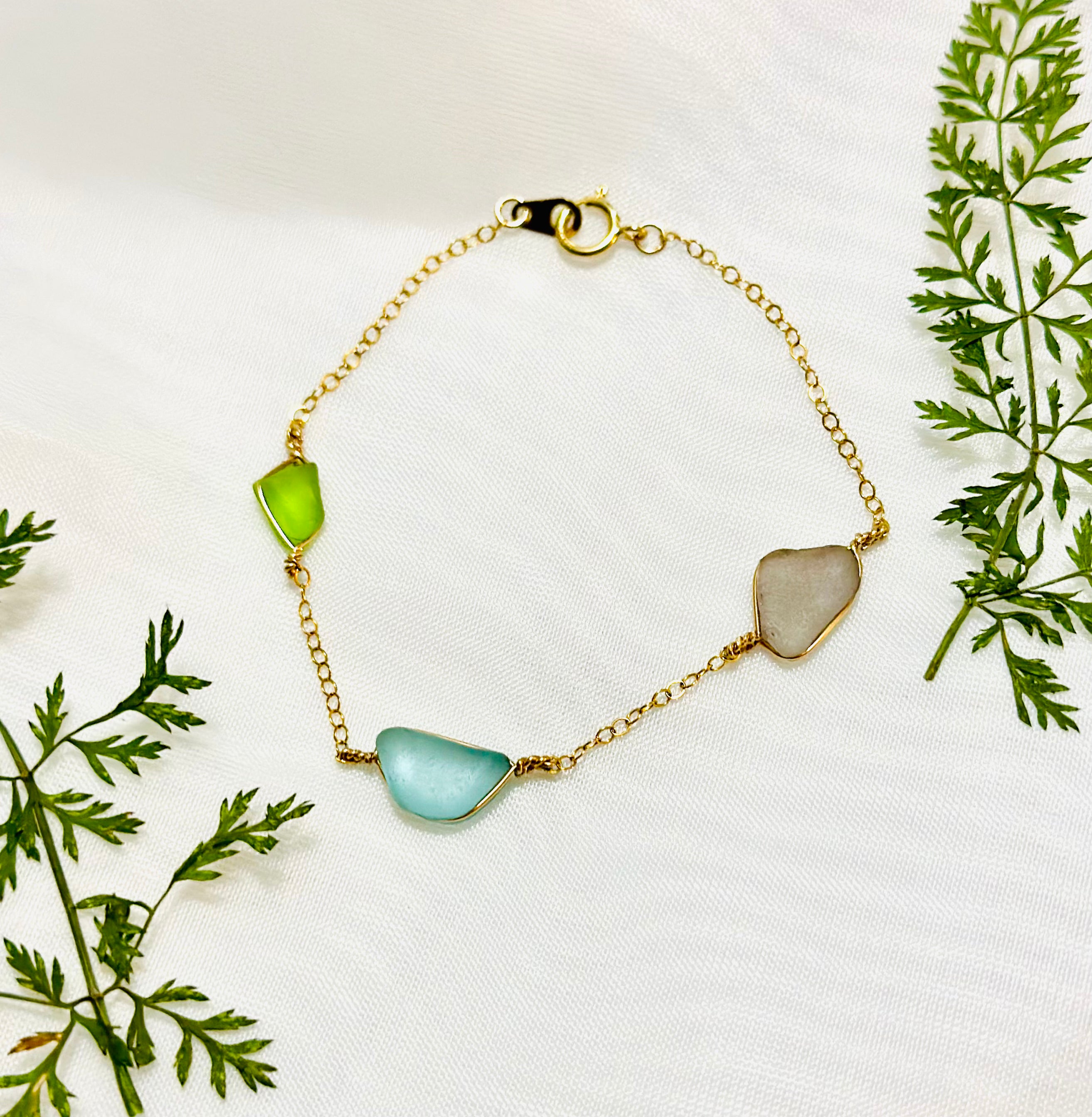 Distinctive jewelry made from authentic Lake Michigan sea glass, wildflowers, and stone
